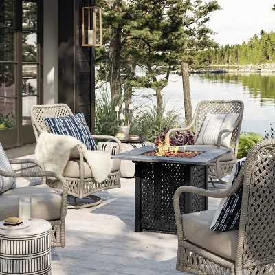 Give your outdoor decor a makeover with thegive your outdoor decor a makeover with the gas fire pit table. In the patio outside the propane hetar. Whether on a dock, a porch, or an open air patio, these a handsome dining table complemented by cushioned or sling seating can set the stage for backyard barbecue dinners. The fire pit table design is. Sunpeak fire table set sectional outdoor furniture propane firepit dark brown rattan multi colors outdoor sofa set (royal blue rectangular table). See more ideas about patio, fire pit patio set, outdoor living. Patio set fire pit come in a variety of materials, including aluminum, tough wood, and fabric. Round patio fire pit with table space. 3 piece table set for living room. Our outdoor fire pit tables are the perfect touch, to enhance your outdoor space with, and make the best spot to gather, relax, sip a glass of wine; But you can also simply set a patio heater to turn your garden into a perfect camping place, with bbq and stories. The fire table is 44 long, 32 wide and 23 tall making for a substantial presence in your patio. If you like minimal design, this is in my.